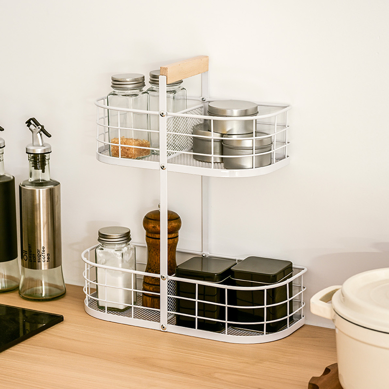 This two-tier oval basket is perfect for maximizing vertical space without sacrificing style. Each level features divided compartments for different types of items, from fresh produce to snack bars or spice packets. The tall wooden handle ties the design together and makes it easy to transport — turning everyday storage into an elegant table centerpiece.